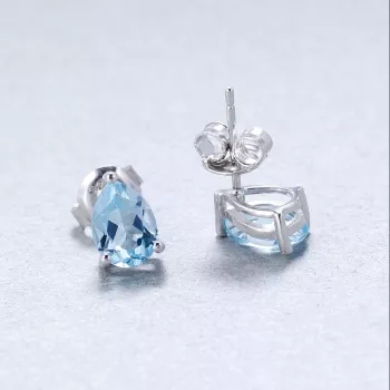 Swiss Blue Topaz Stud Earrings in Sterling Silver - 0.99Ct Natural Gemstone