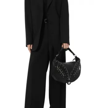 Versace Black Calf Leather Small Hobo Shoulder Bag